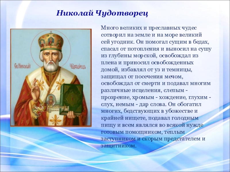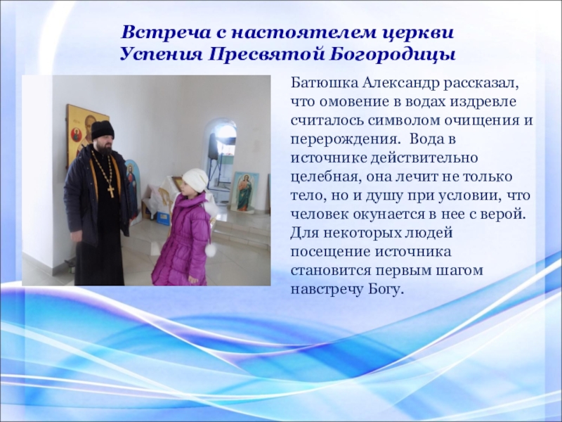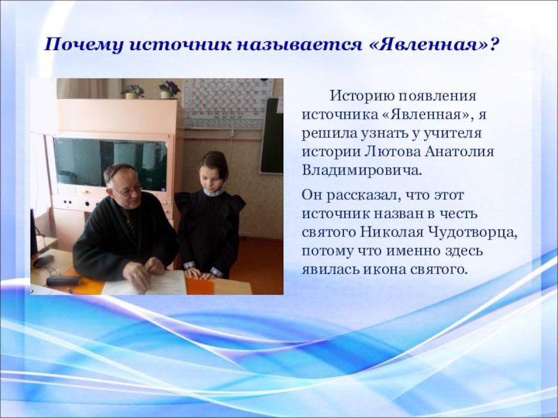 Он рассказал, что этот источник назван в честь святого Николая Чудотворца, потому что именно здесь явилась икона святого.