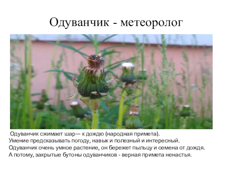 Слайд 23Одуванчик - метеоролог