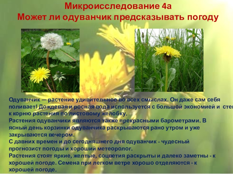 а. Может ли одуванчик предсказывать погоду.