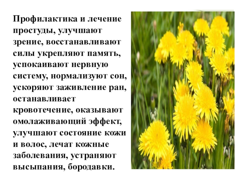 Слайд 27Профилактика и лечение простуды, улучшают зрение, восстанавливают силы укрепляют память, успокаивают