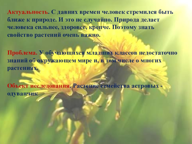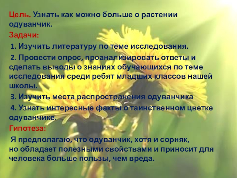Цель. Узнать как можно больше о растении одуванчик.