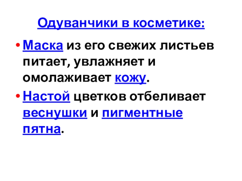 Слайд 30Одуванчики в косметике: