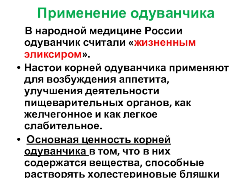 Слайд 24С древних времён одуванчик используют в лечебных целях и называют «эликсир