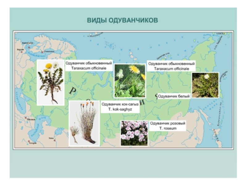 ареал произрастания одуванчиков очень велик, многообразны их виды;