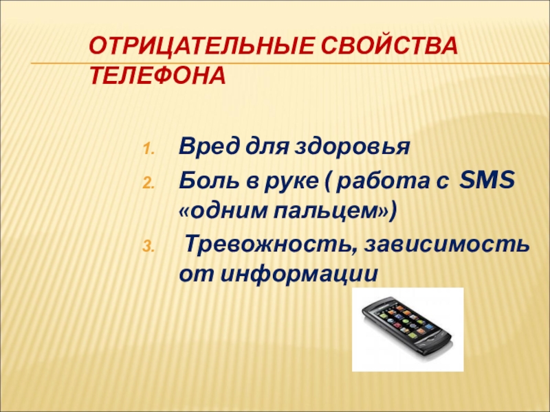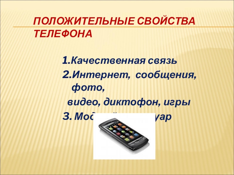 2. Изучить положительные и отрицательные свойства сотовых телефонов
