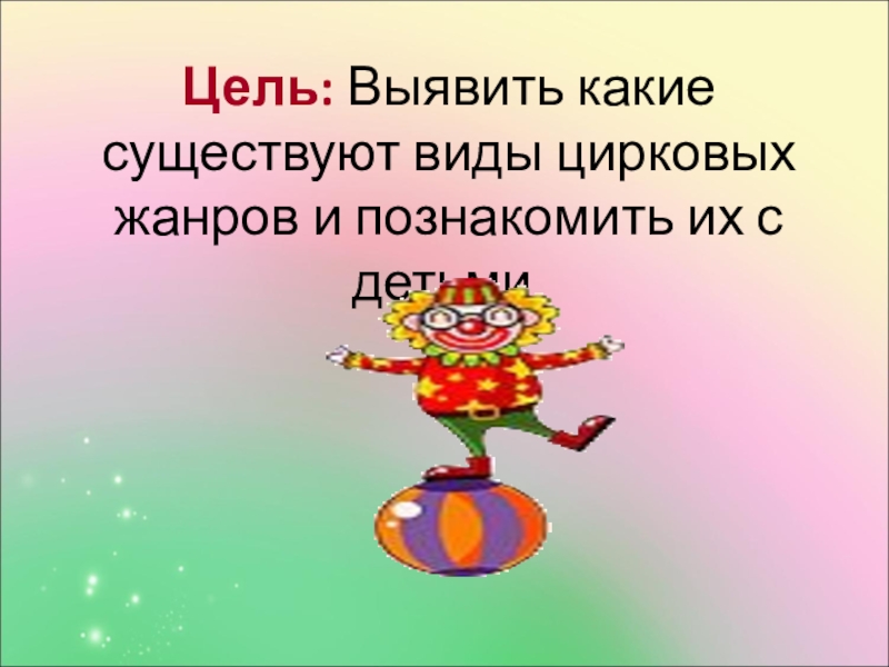 Слайд 3Цель: Выявить какие существуют виды цирковых жанров и познакомить их с