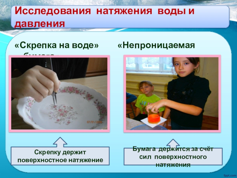 Бумага держится за счёт сил поверхностного натяжения