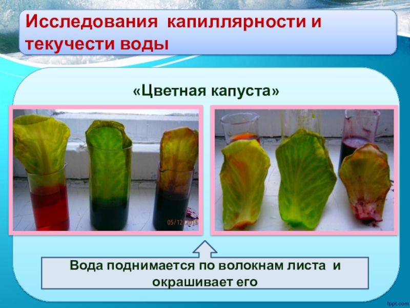 Вода поднимается по волокнам листа и окрашивает его