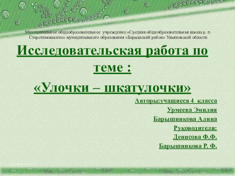 Исследовательская работа по теме :