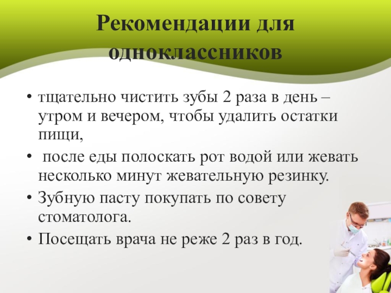 тщательно чистить зубы 2 раза в день – утром