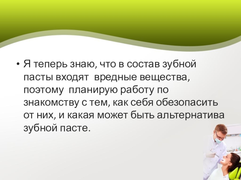 Слайд 32Я теперь знаю, что в состав зубной пасты входят вредные вещества,