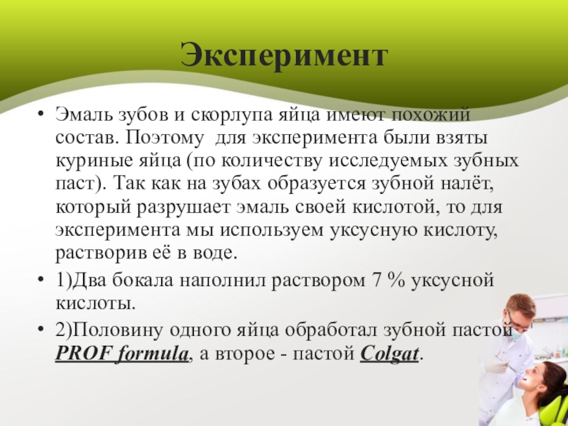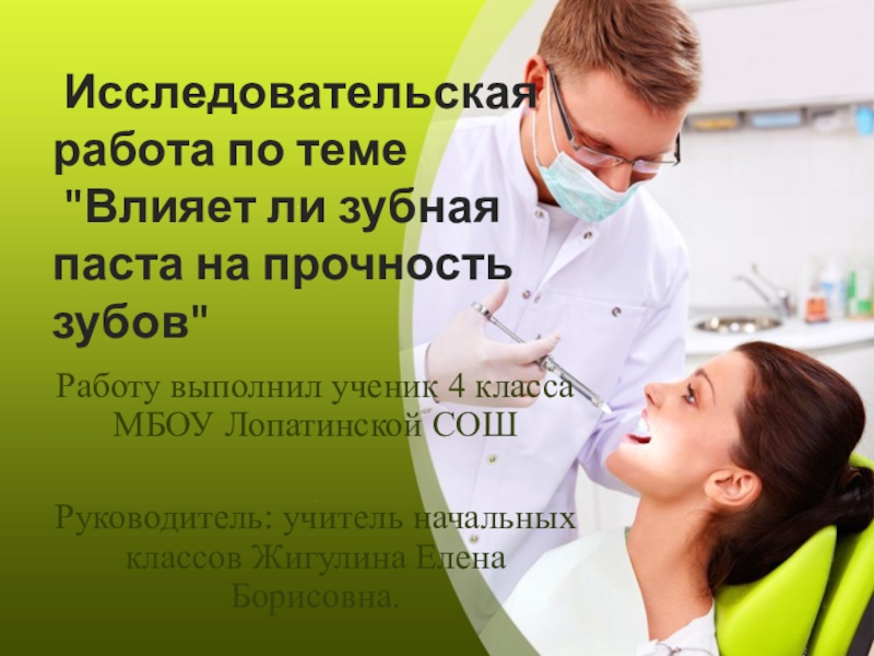 изучение влияния зубной пасты на прочность зубов.