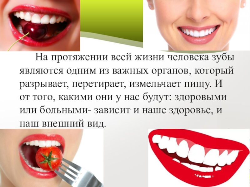 Слайд 2 На протяжении всей жизни человека зубы являются одним из важных органов,