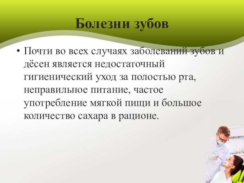 Почти во всех случаях заболеваний зубов и дёсен является недостаточный