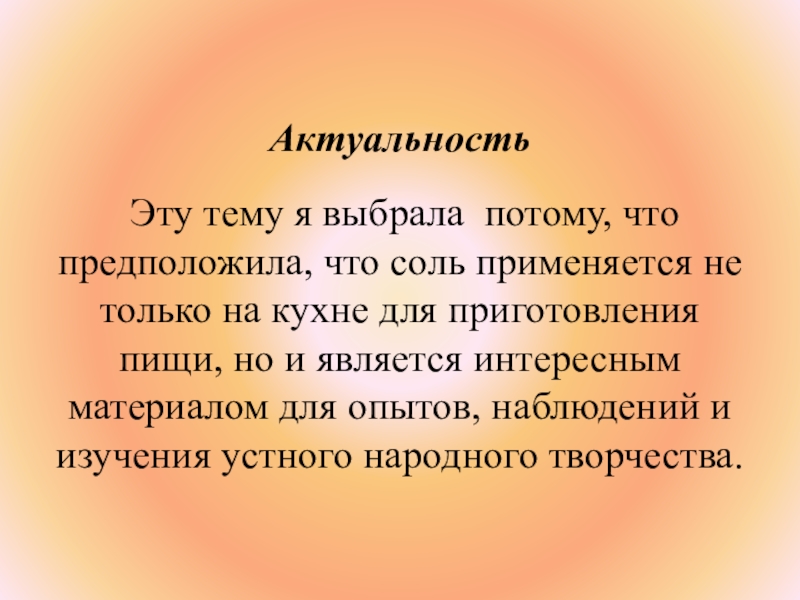 Эту тему я выбрала потому, что предположила, что соль применяется