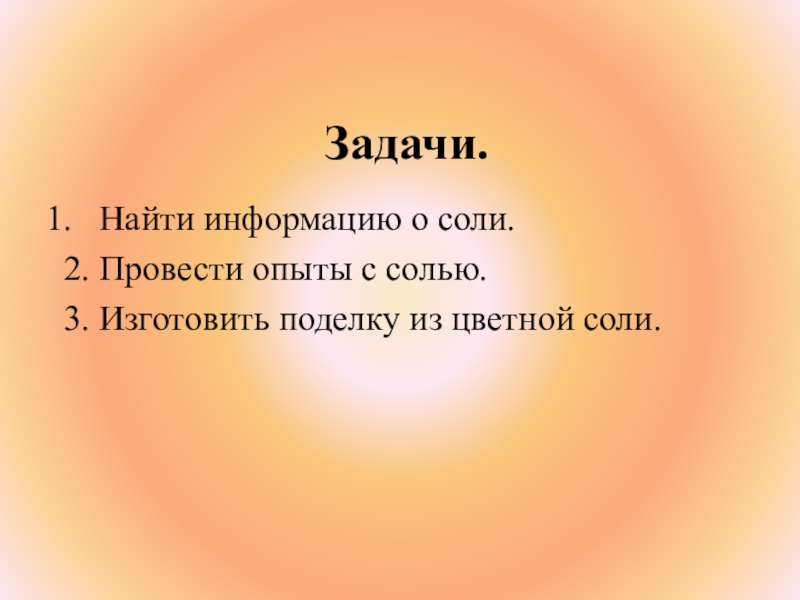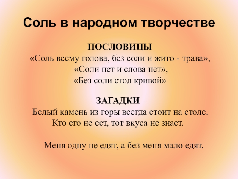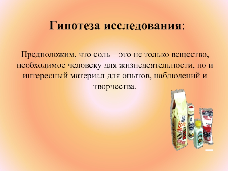Цель: изучить особенности соли, её свойства, качества и применение.