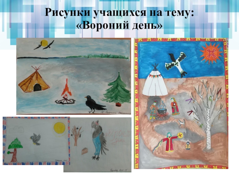 Слайд 16Рисунки учащихся на тему: «Вороний день»