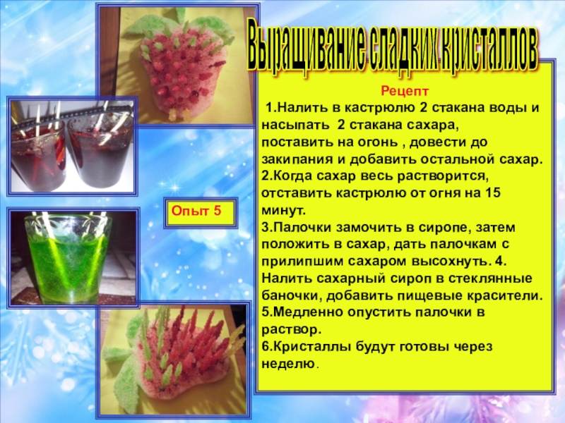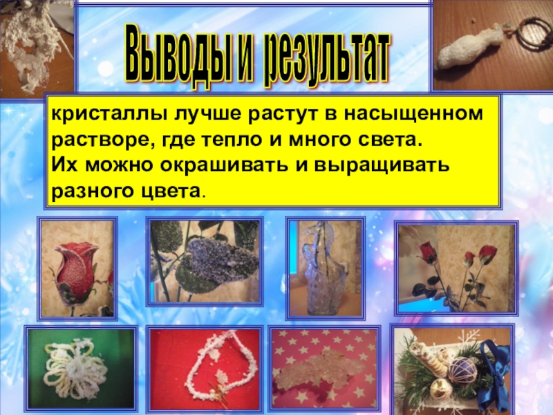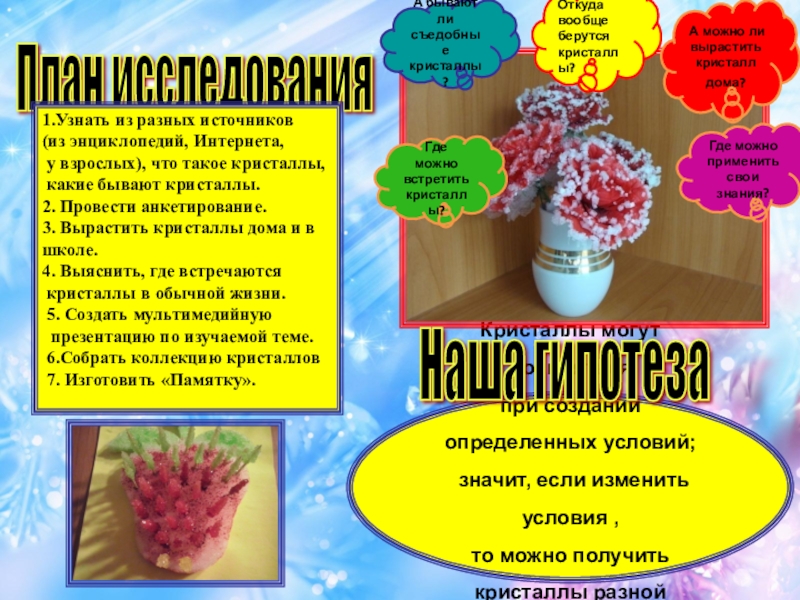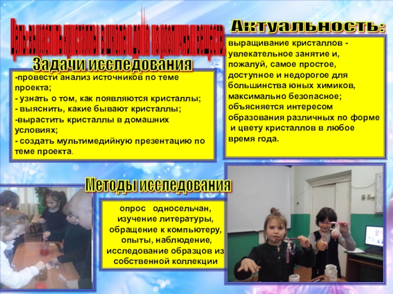 Цель: вырастить кристаллы в школе и дома из различных веществ.
