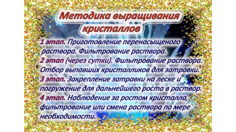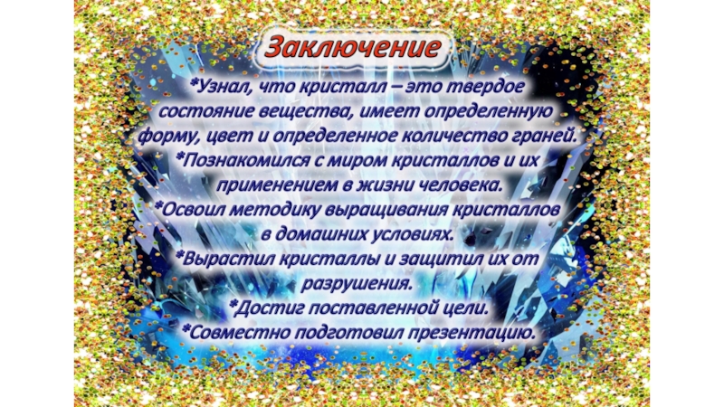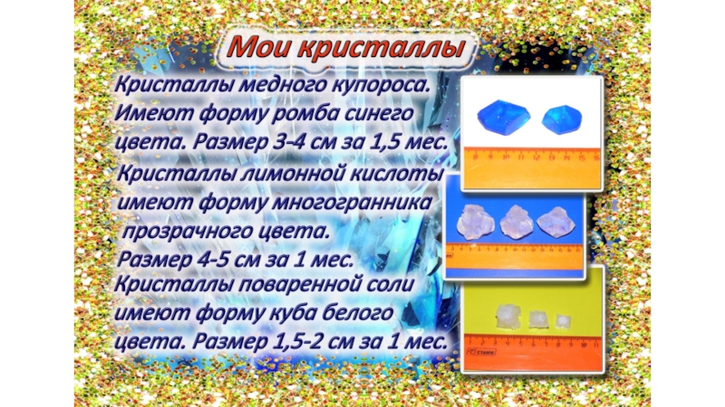 Презентация к исследовательской работе Выращивание кристаллов в домашних условиях Детские презентации