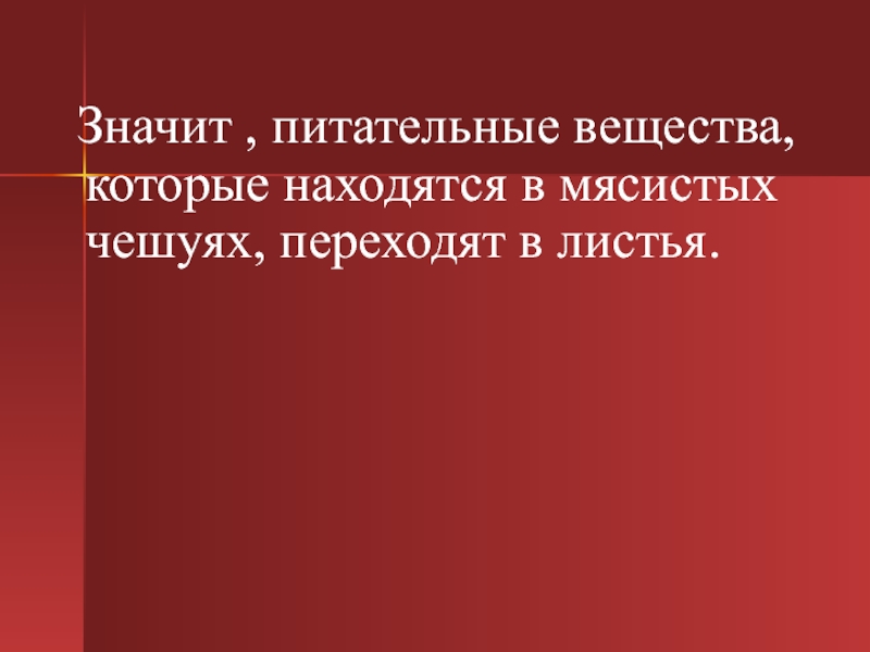 Слайд 18 Значит , питательные вещества, которые находятся в мясистых чешуях, переходят