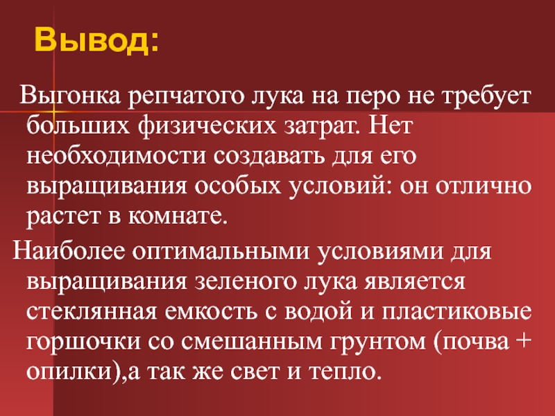 Выявить наиболее оптимальные условия для выращивания лука на перо в помещении…