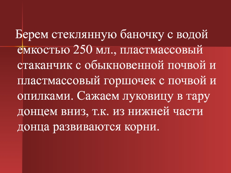 Слайд 1Выращивание лука репчатого на перо в помещении