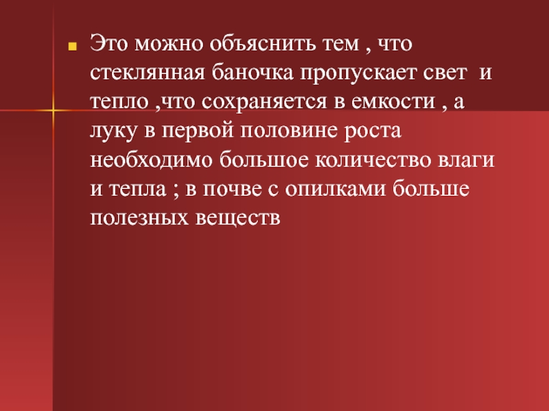 тепло ,что сохраняется в емкости , а луку в первой половине роста необходимо большое количество влаги и тепла ; в почве с опилками больше полезных веществ