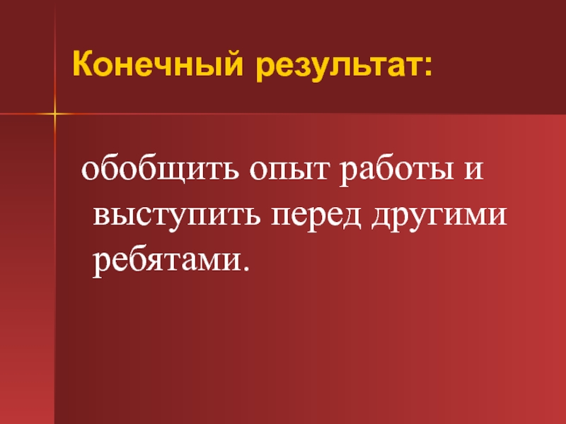 обобщить опыт работы и выступить перед другими ребятами.