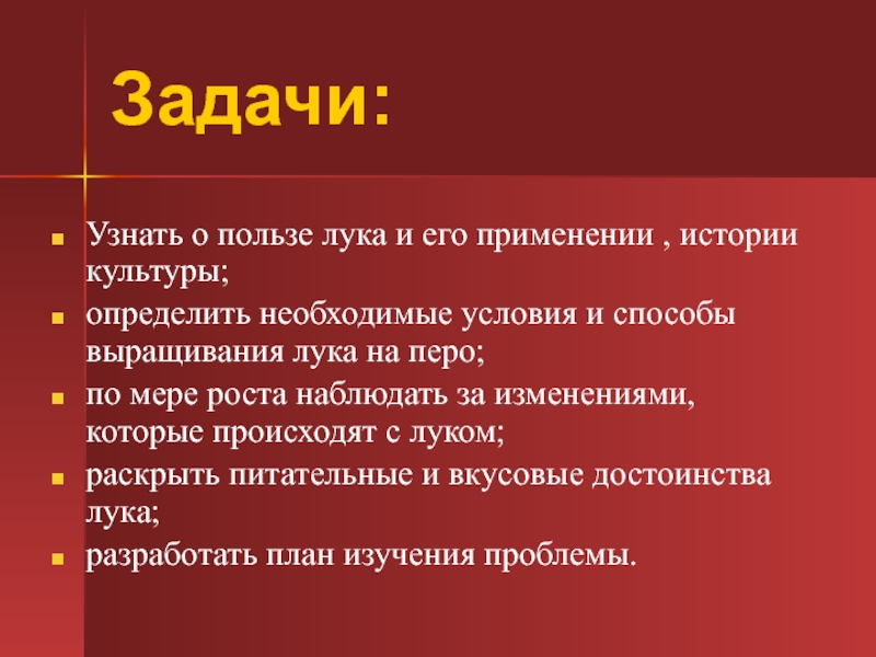 раскрыть питательные и вкусовые достоинства лука;