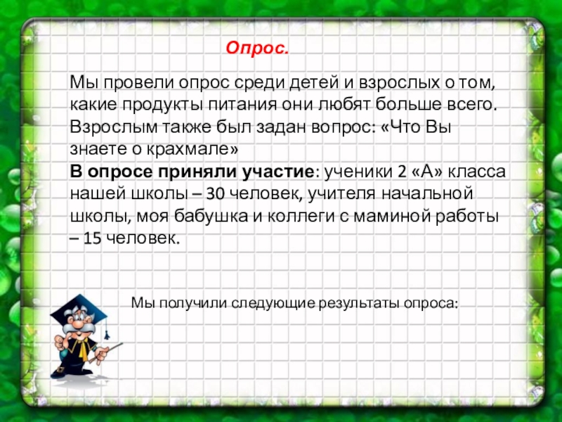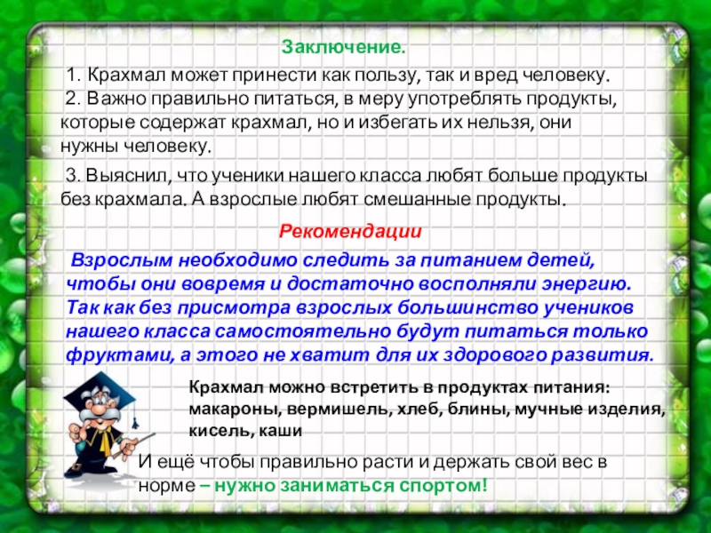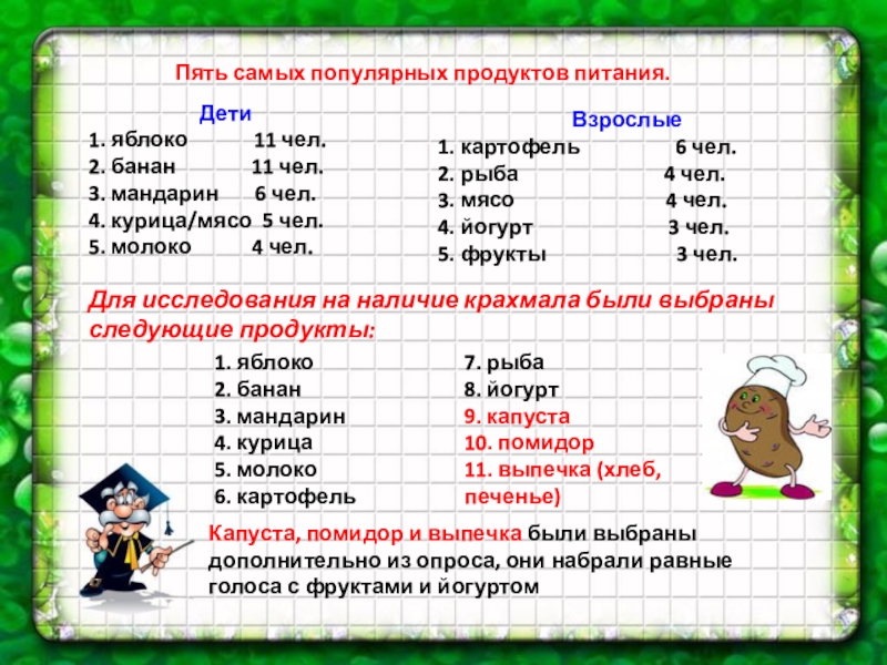3. Выяснил, что ученики нашего класса любят больше продукты без крахмала. А взрослые любят смешанные продукты.