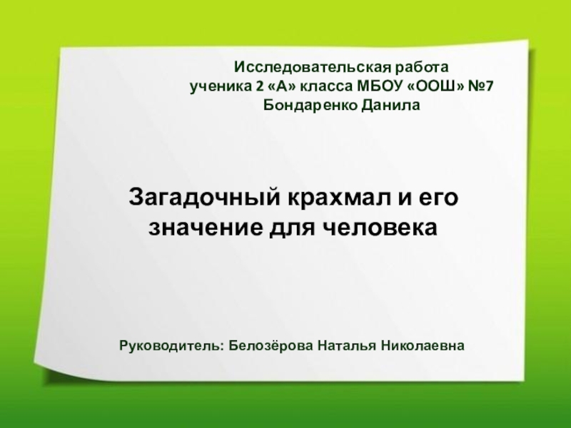 Объект исследования: крахмал