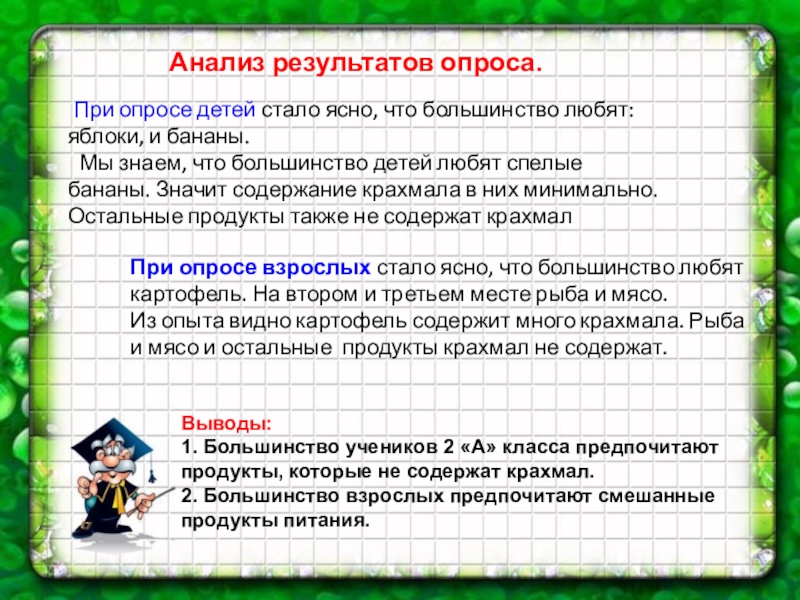 1. Большинство учеников 2 «А» класса предпочитают продукты, которые не содержат крахмал.