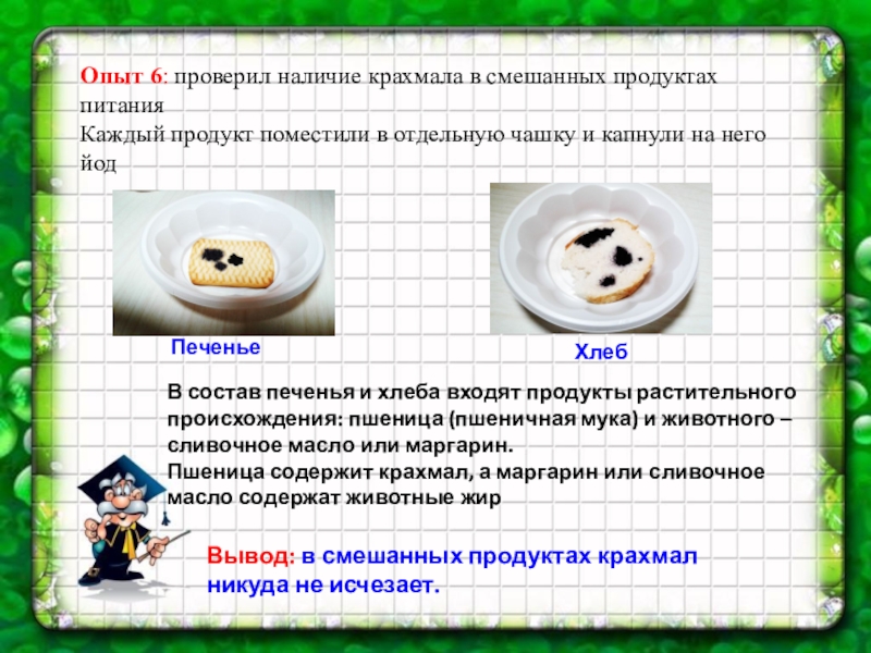 Вывод: в смешанных продуктах крахмал никуда не исчезает.