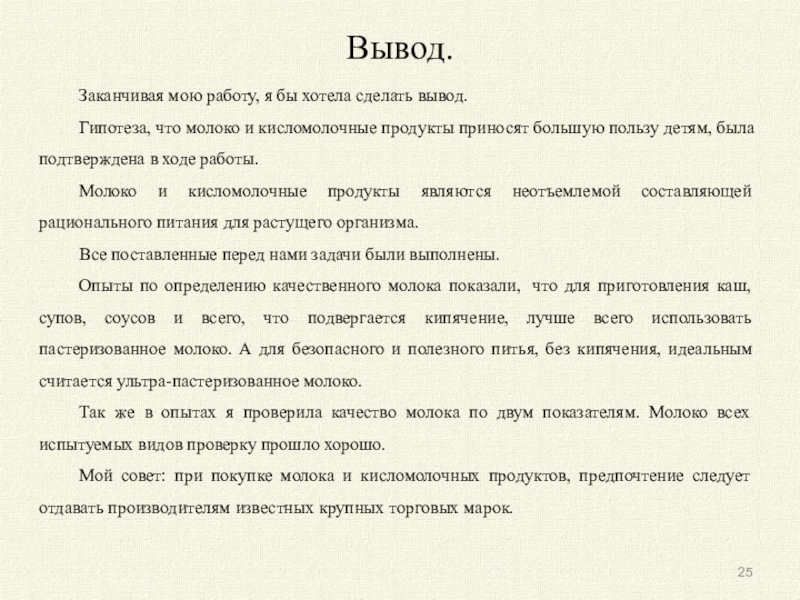 Заканчивая мою работу, я бы хотела сделать вывод.