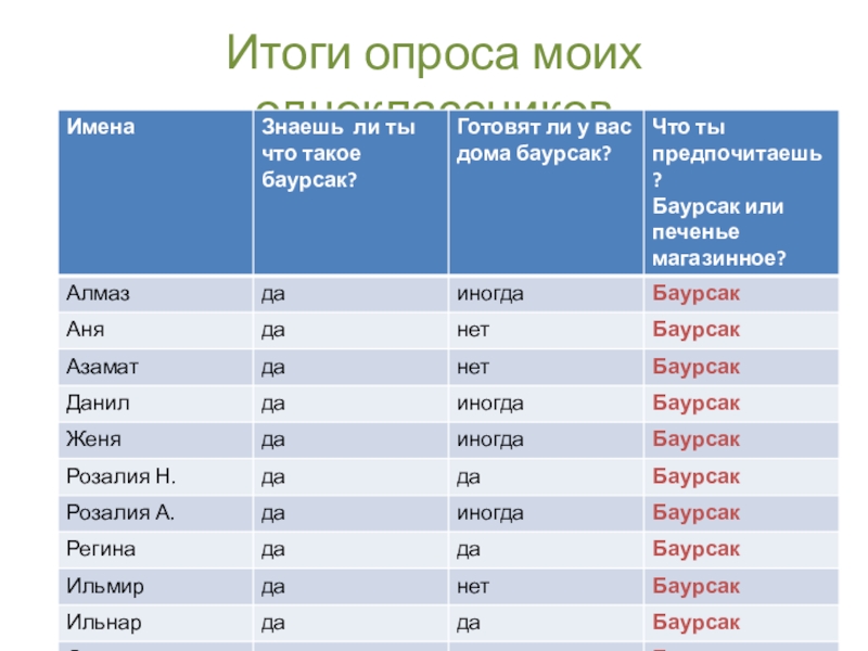 Ответы моих одноклассников я занесла в таблицу: