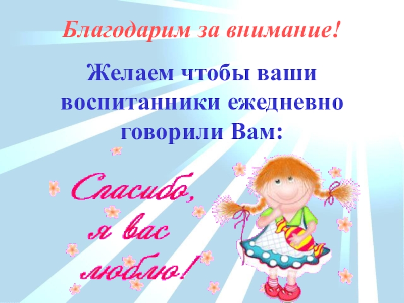 Благодарим за внимание! Желаем чтобы ваши воспитанники ежедневно говорили Вам: