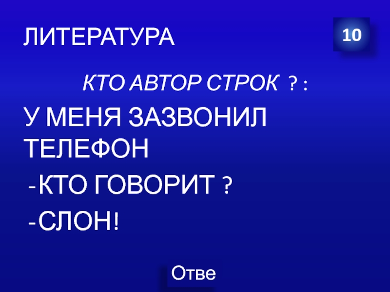 Это сайт презентаций, где можно хранить и обмениваться своими презентациями, докладами, проектами, шаблонами в формате PowerPoint с другими пользователями. Мы помогаем школьникам, студентам, учителям, преподавателям хранить и обмениваться учебными материалами.