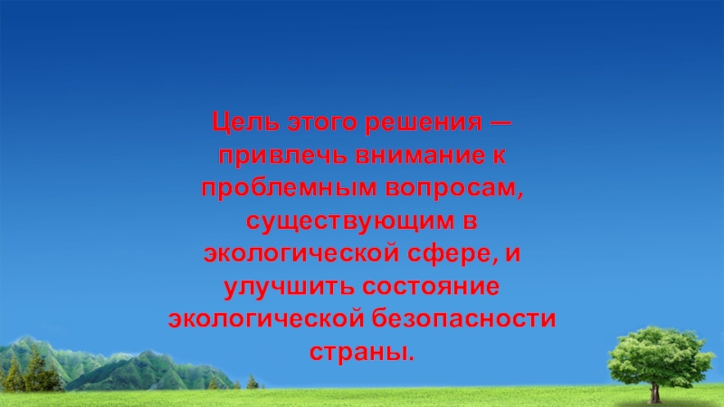 Цель этого решения — привлечь внимание к проблемным вопросам, существующим в экологической сфере, и улучшить состояние экологической безопасности страны.
