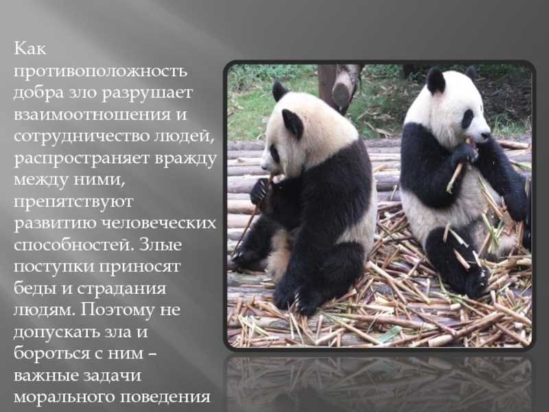 Слайд 7Как противоположность добра зло разрушает взаимоотношения и сотрудничество людей, распространяет вражду