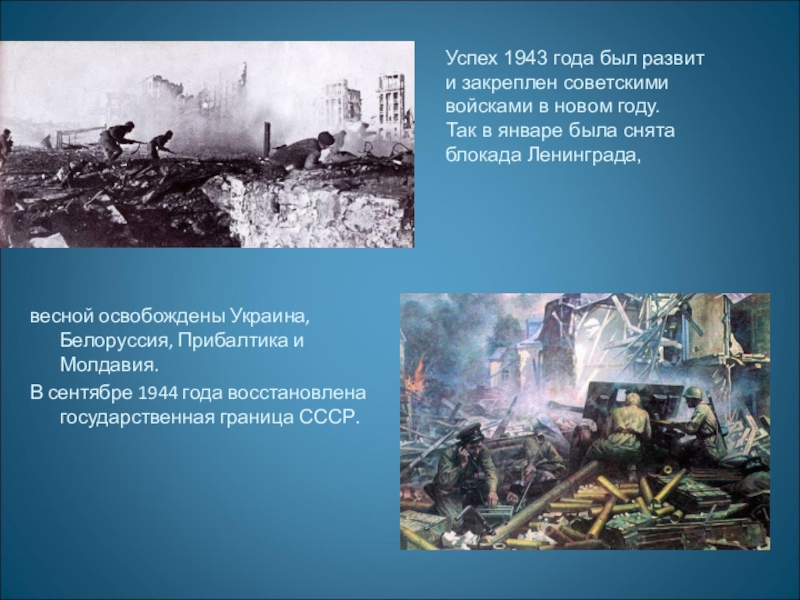 Успех 1943 года был развит и закреплен советскими войсками в новом году.