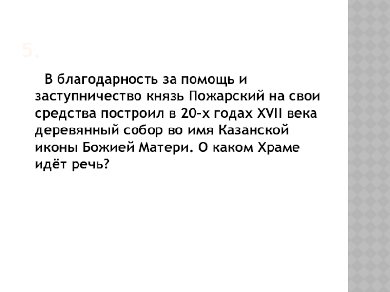5.   В благодарность за помощь и заступничество князь Пожарский на свои средства построил в 20-х