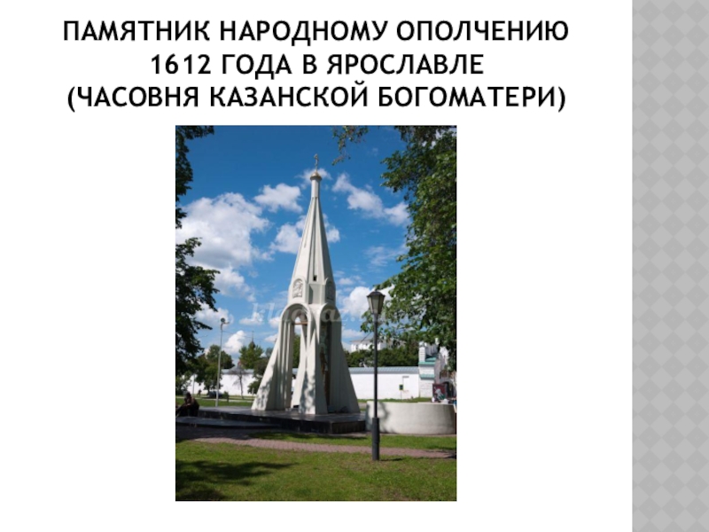 Слайд 32Памятник народному ополчению 1612 года в Ярославле (Часовня Казанской Богоматери)