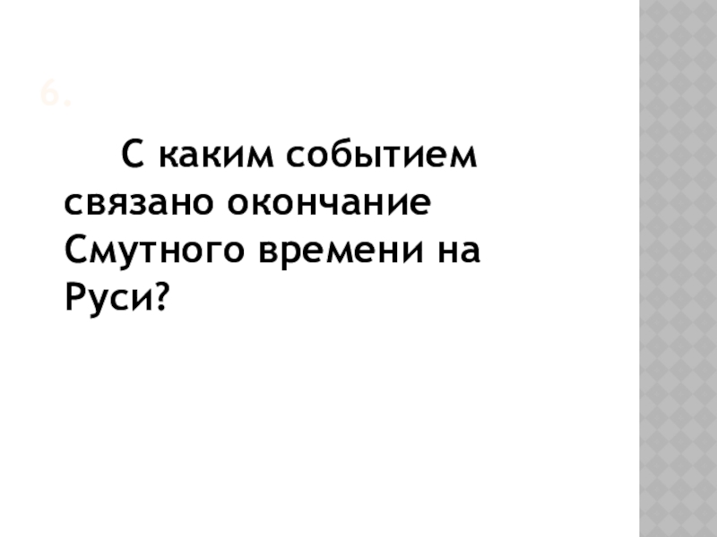 6.      С каким событием связано окончание Смутного времени на Руси?