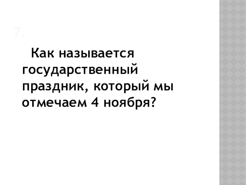 7.   Как называется государственный праздник, который мы отмечаем 4 ноября?
