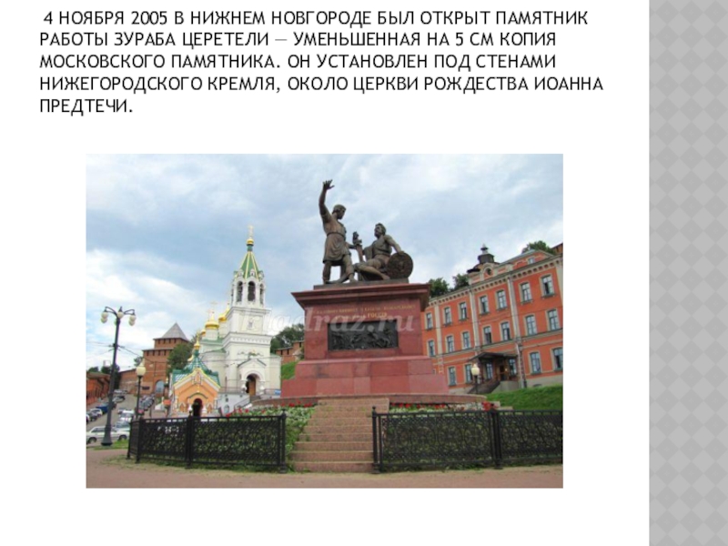 Слайд 33 4 ноября 2005 в Нижнем Новгороде был открыт памятник работы