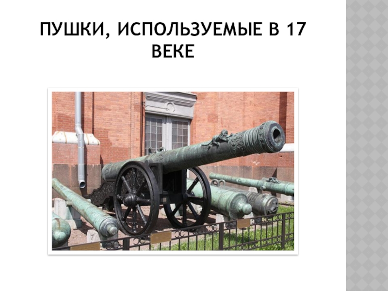 Слайд 22Пушки, используемые в 17 веке