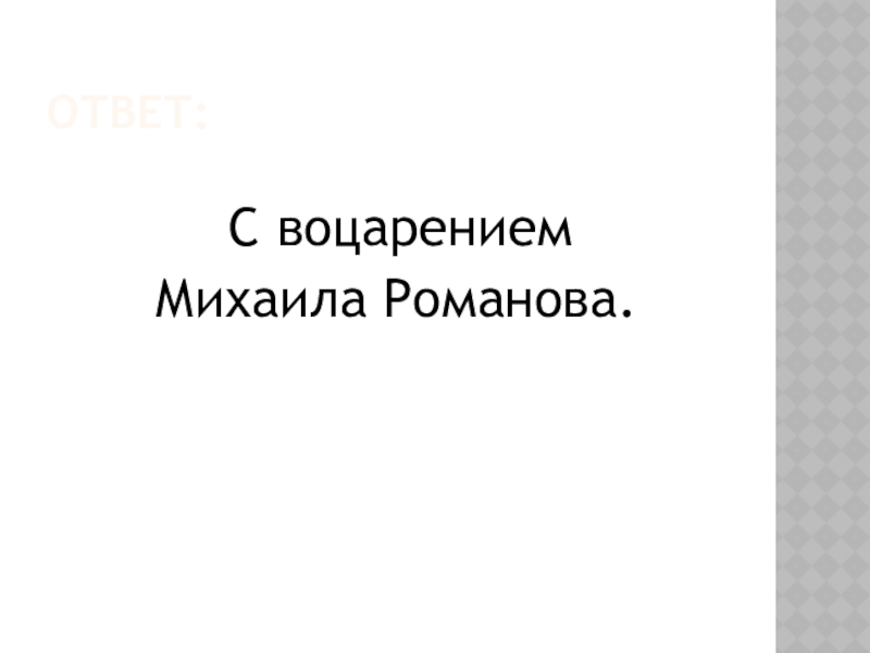 Ответ: С воцарением Михаила Романова.