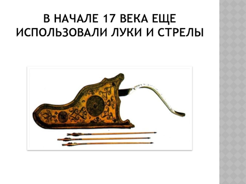 Слайд 18В начале 17 века еще использовали луки и стрелы