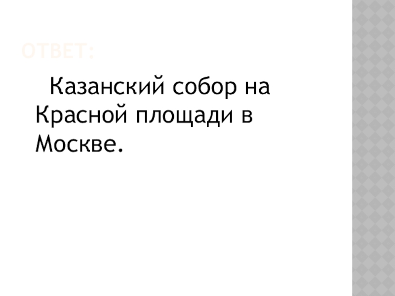 Ответ:   Казанский собор на Красной площади в Москве.