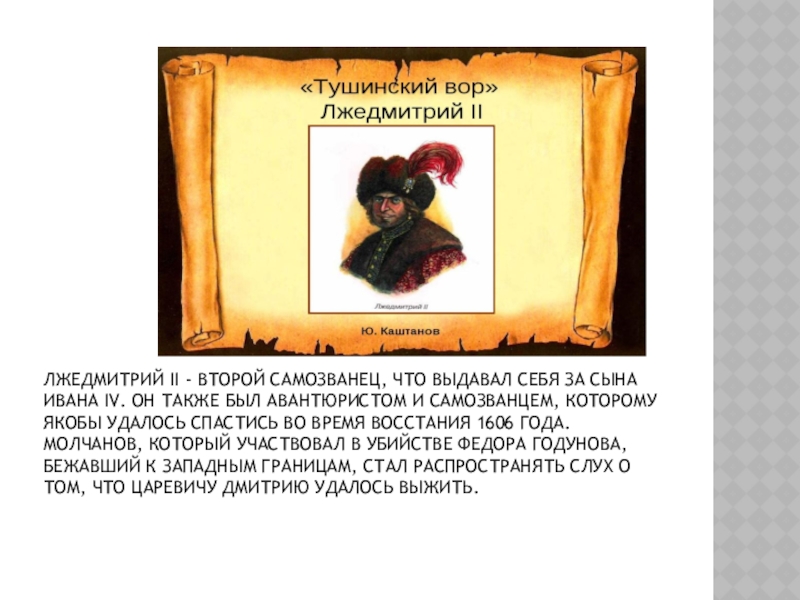 Слайд 11Лжедмитрий II - второй самозванец, что выдавал себя за сына Ивана